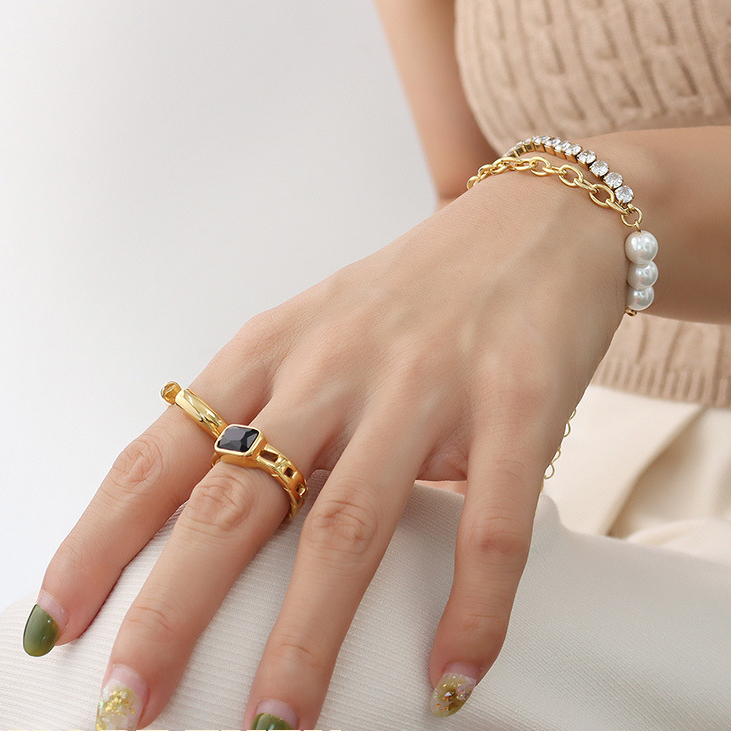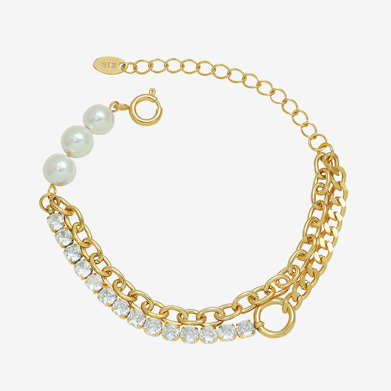 Pearl & Diamond Splicing Double Layer Chain Bracelet