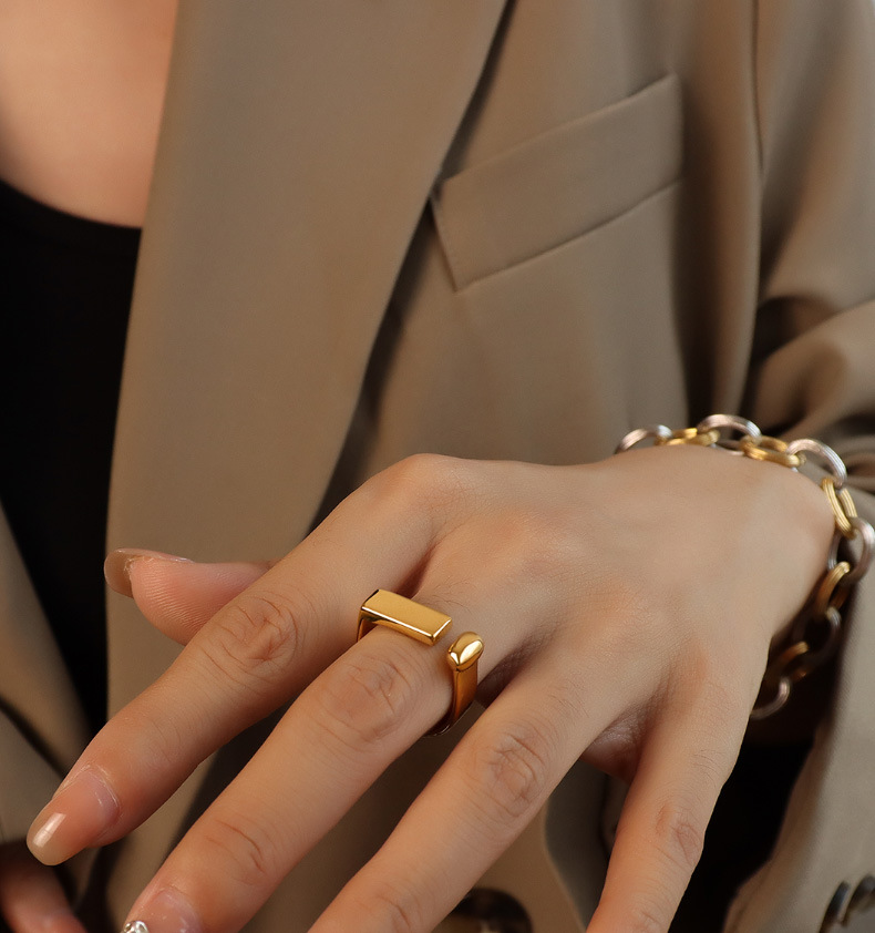 Minimalistic D Shape Open Signet Ring
