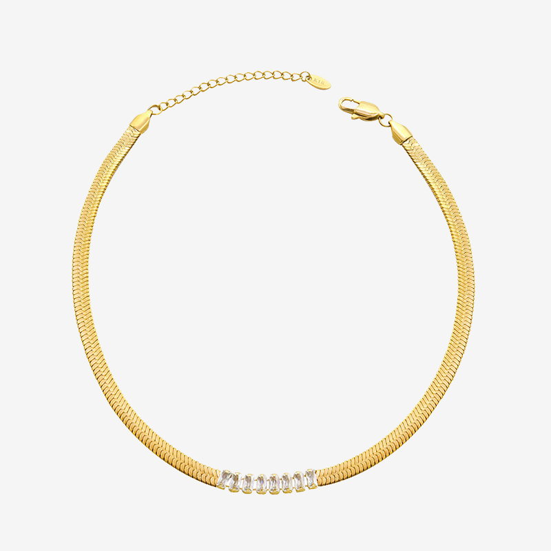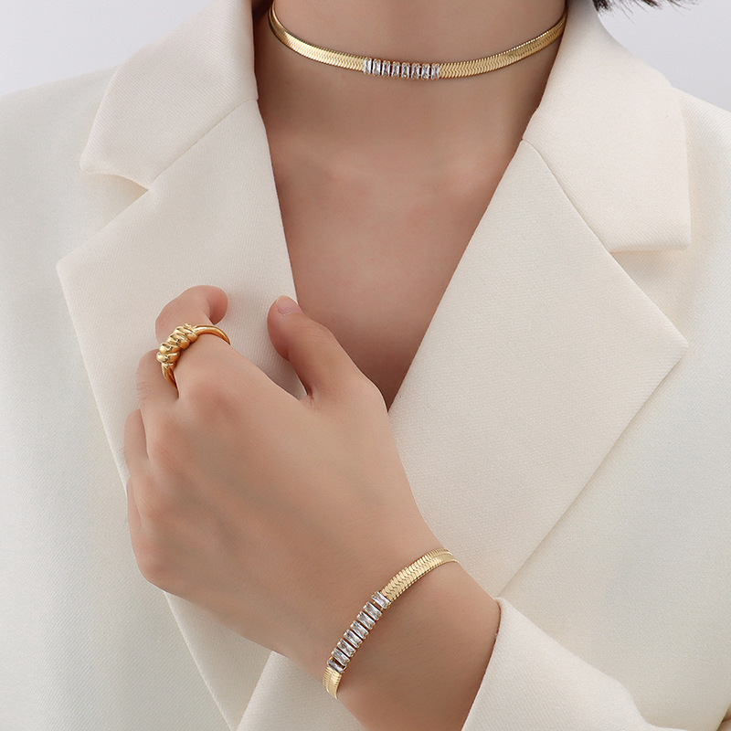 Blade Chain Splicing Diamonds Choker & Bracelet Set