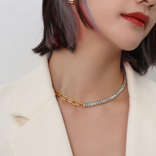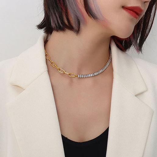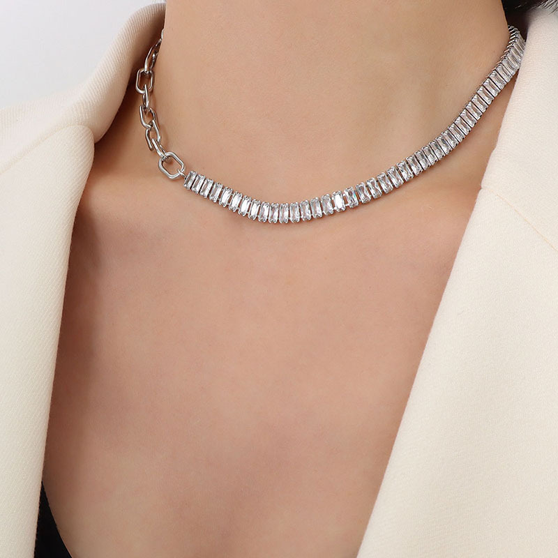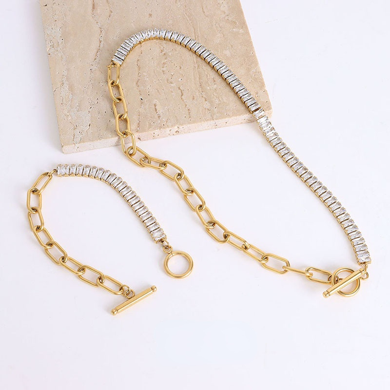 Diamonds Splicing OT Buckle Chain Necklace & Bracelet Set