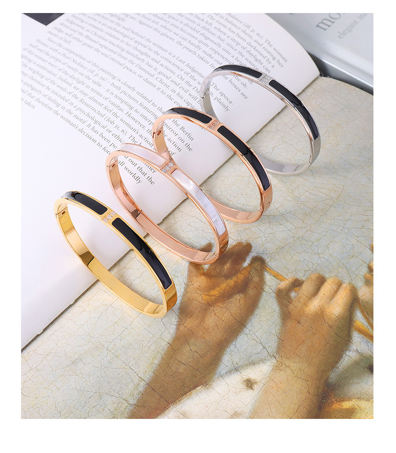 Double Black Stripes With Three Diamonds Inlaid Bangle