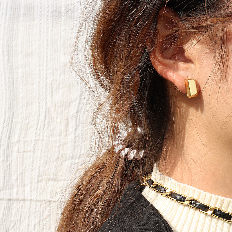 Gold Brick Earing Studs