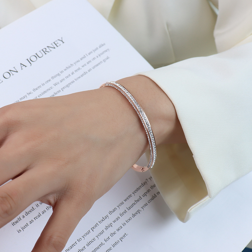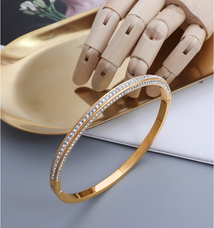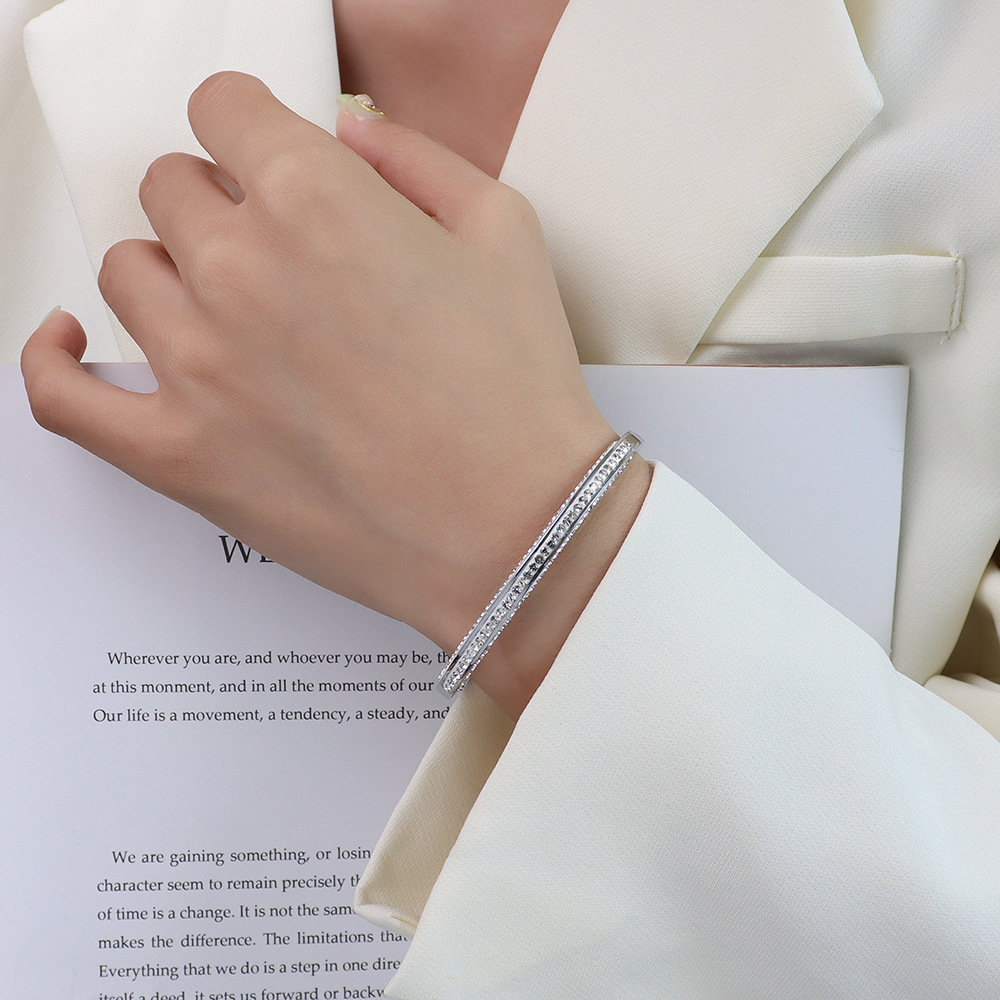 Half Side Diamonds Inlaid Clip Buckle Bangle