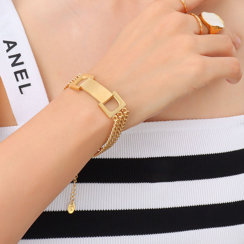 Hardcore Metal Splicing Three Layer Skinny Chain Bracelet