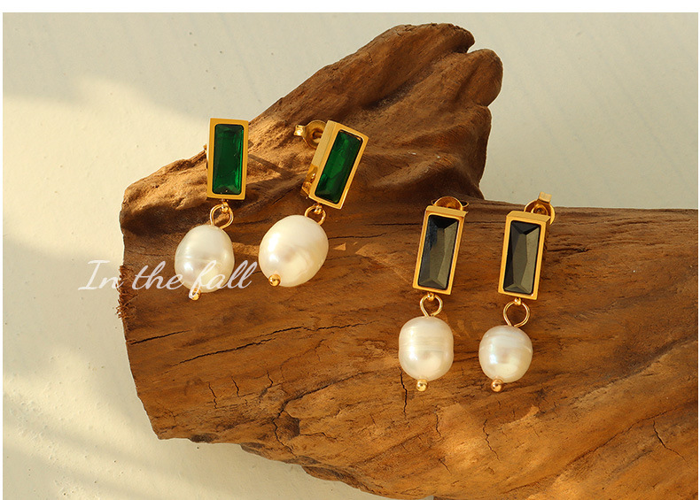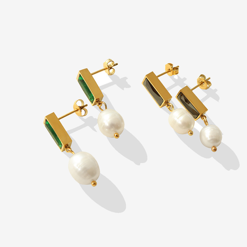 Inlaid Gemstone With Pearl Earings