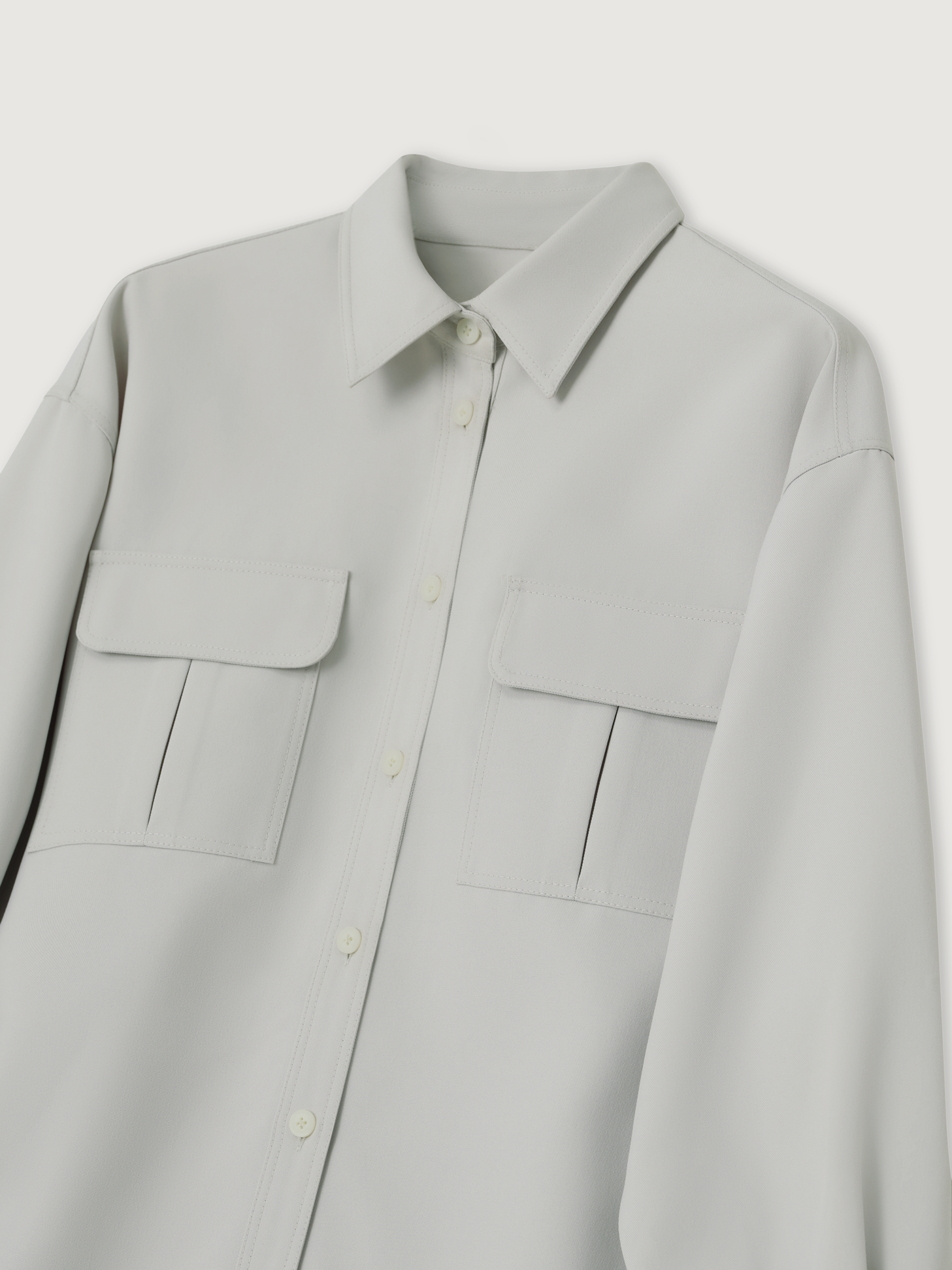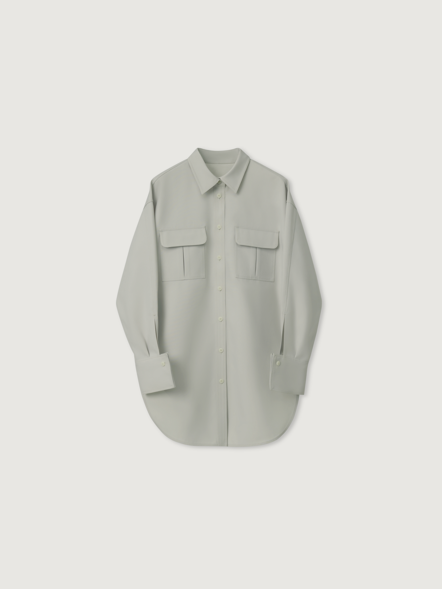 An oversized feel, this shirt has long batwing sleeves, oversized cuffs and curved hemline.