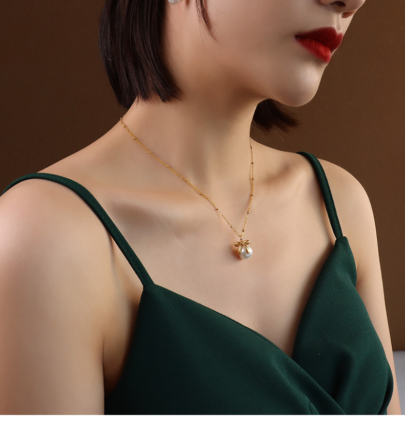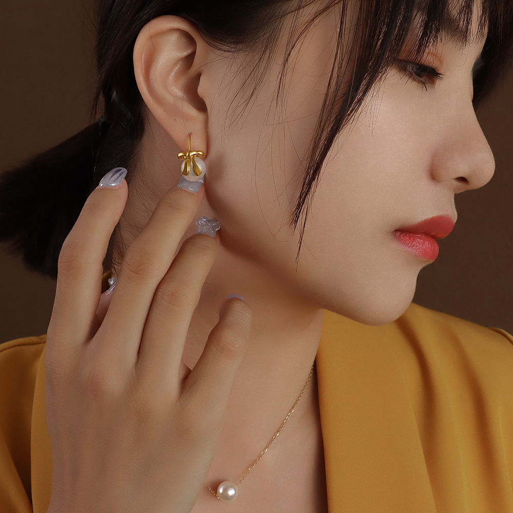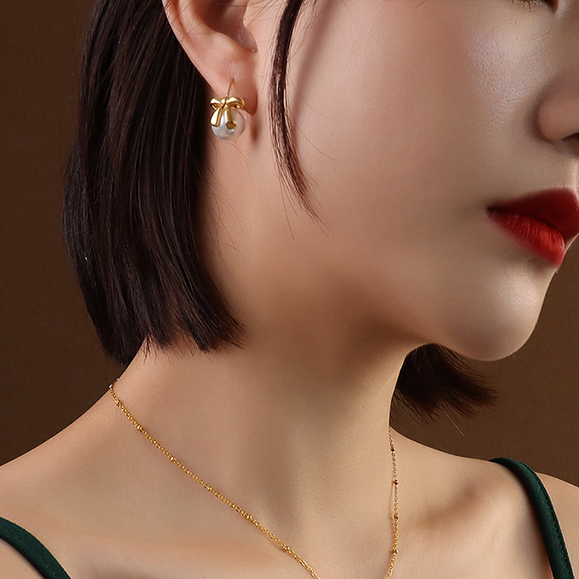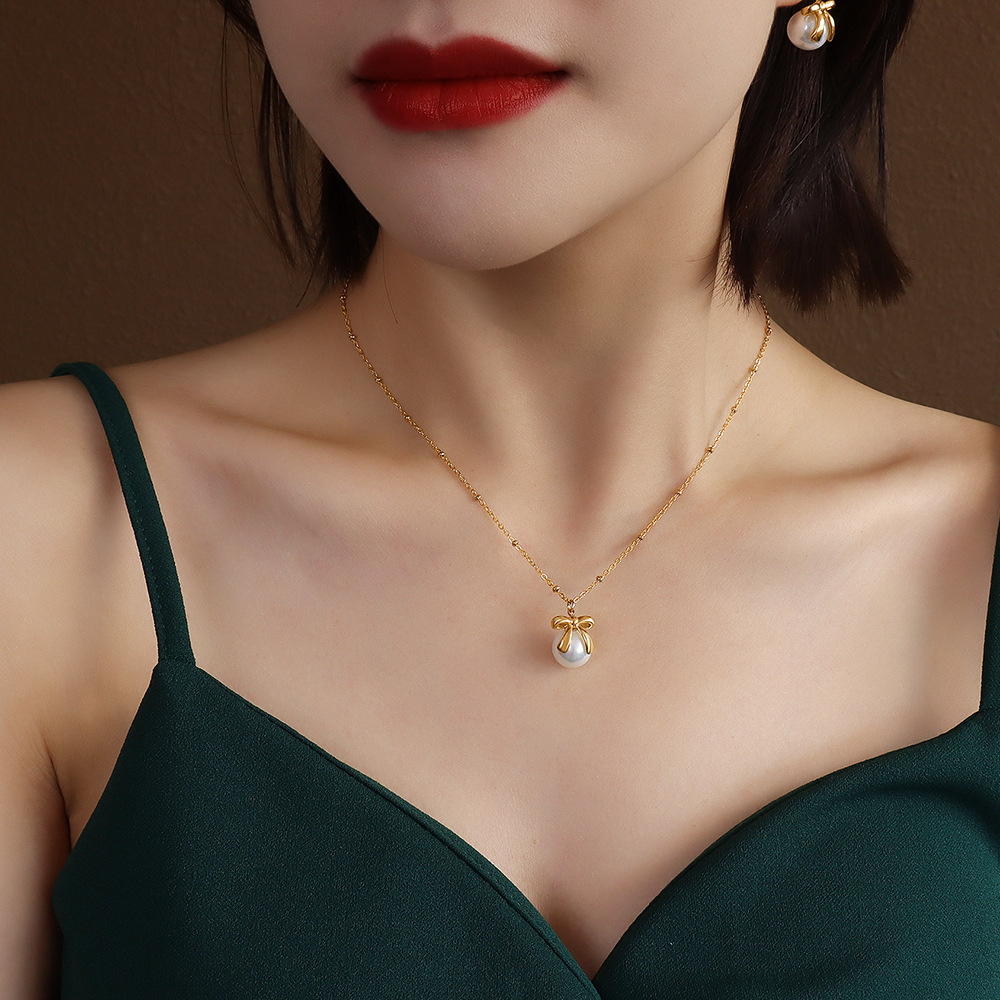 Pearl Bowknot Earings & Necklace Set