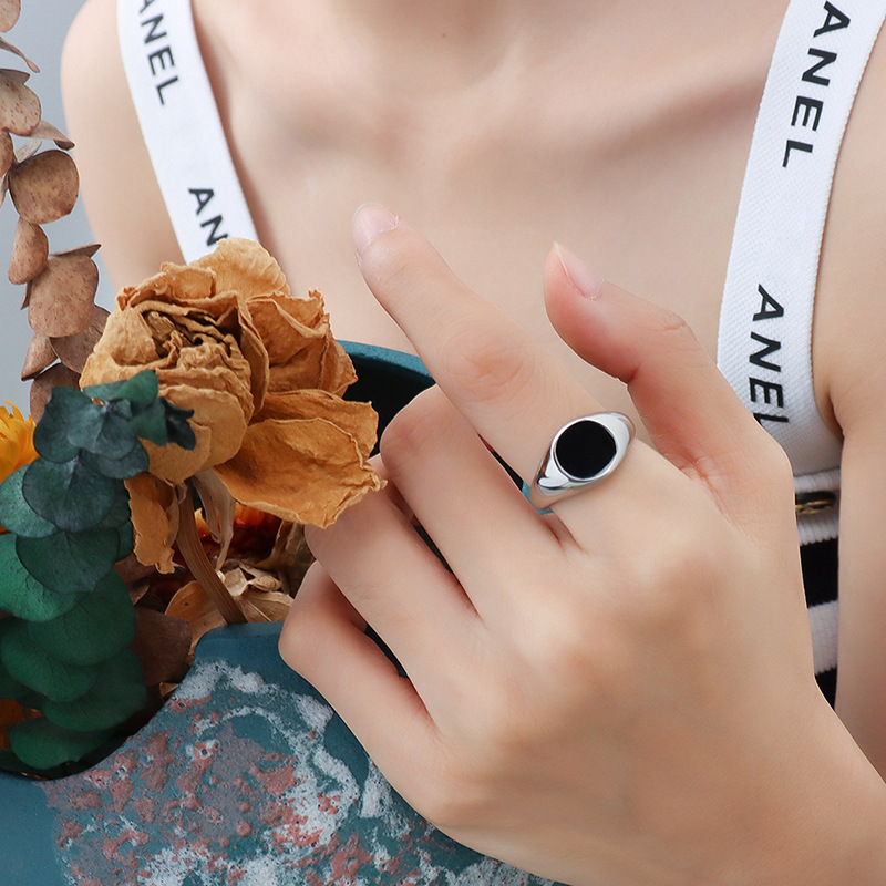 Signet Style Black Oval Ring