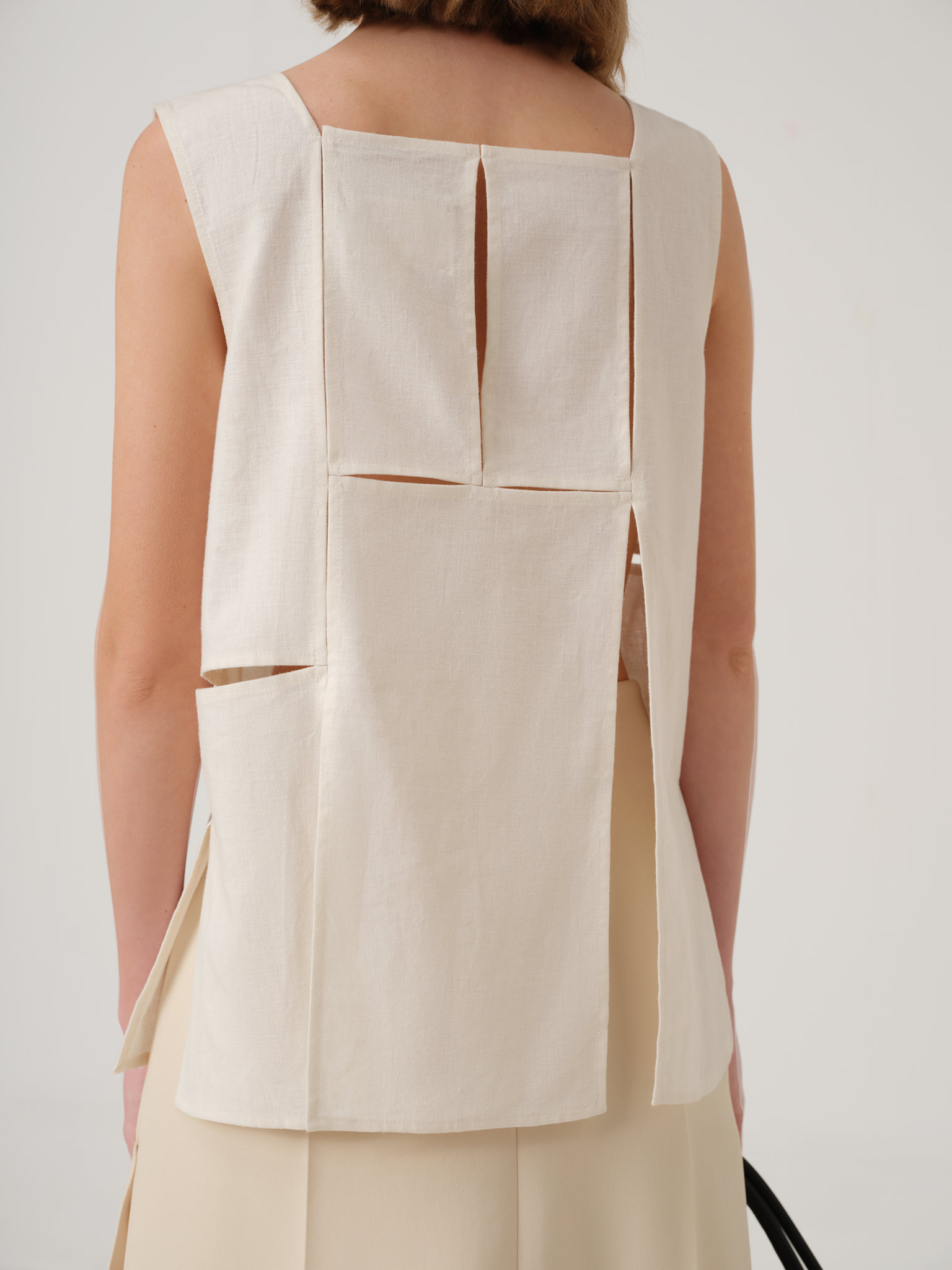 SLEEVELESS CUT-OUT LINEN BLOUSE