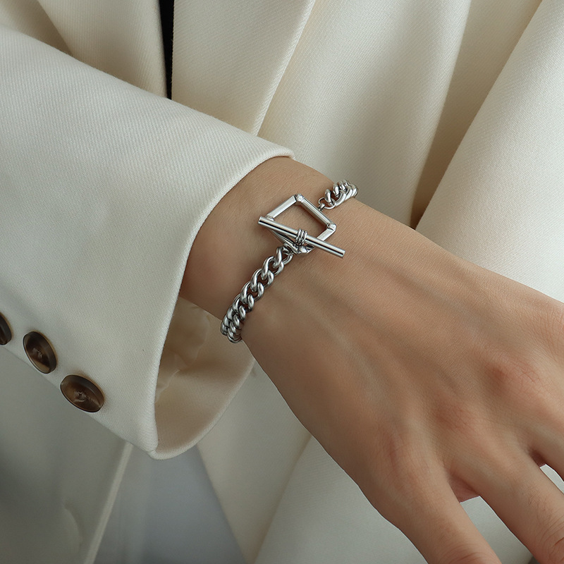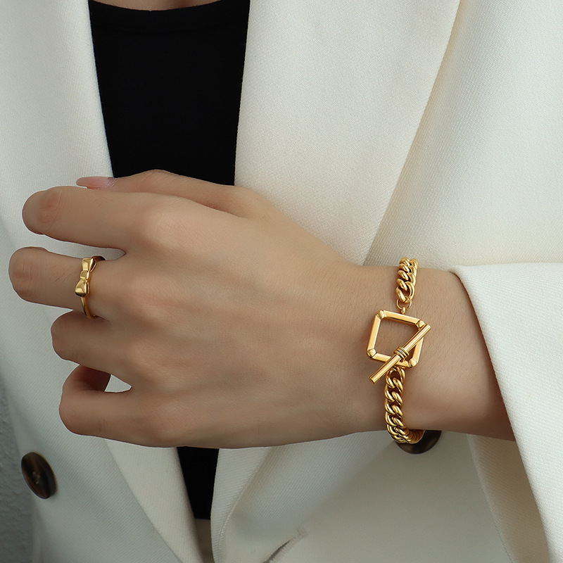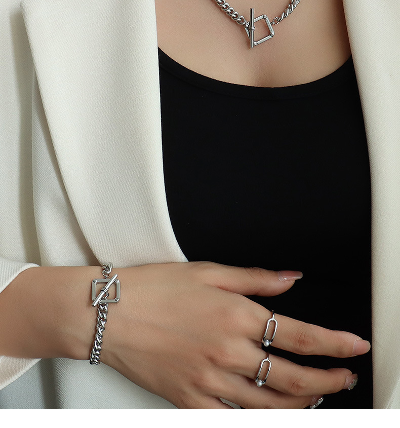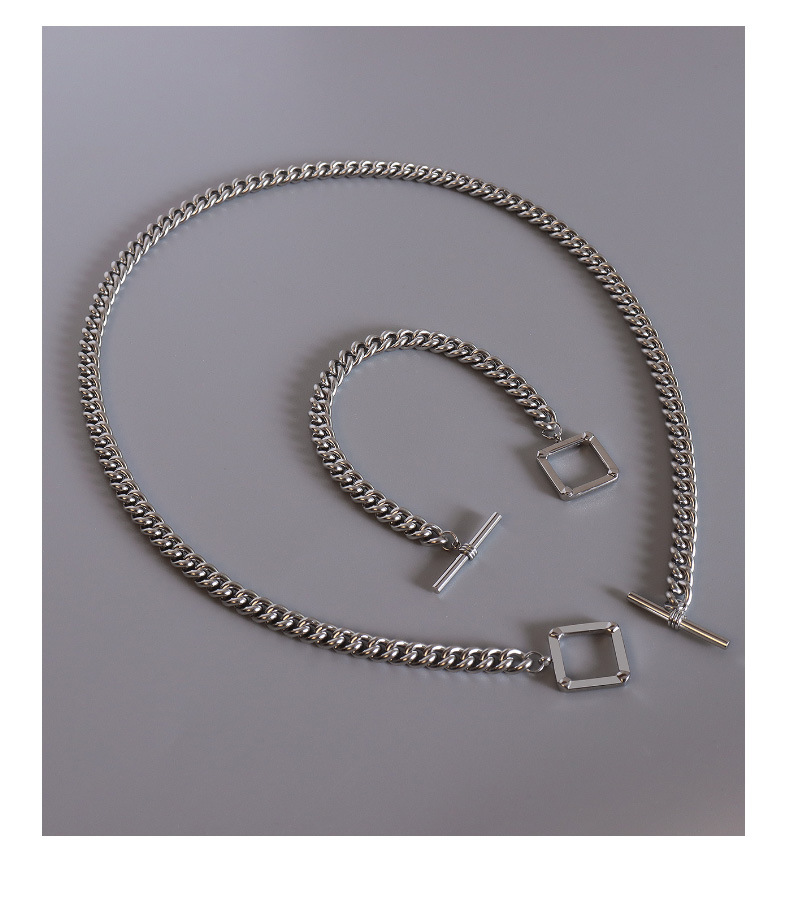 Square Shape OT Buckle Chunky Chain Necklace & Bracelet Set