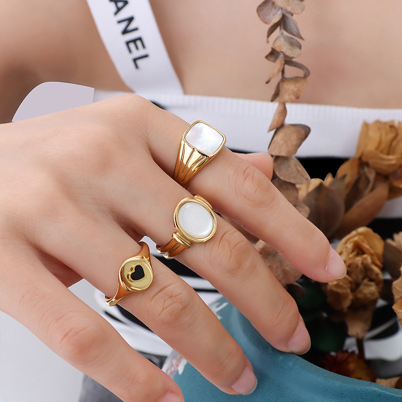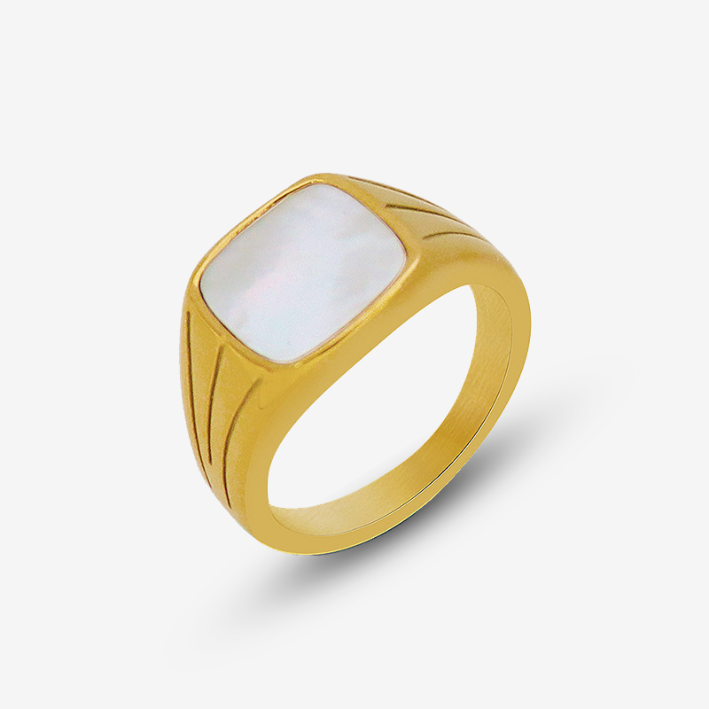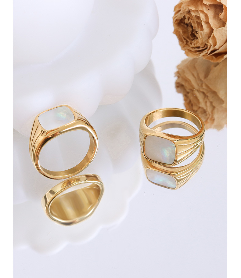 Vintage Square Shape White Seashell Ring