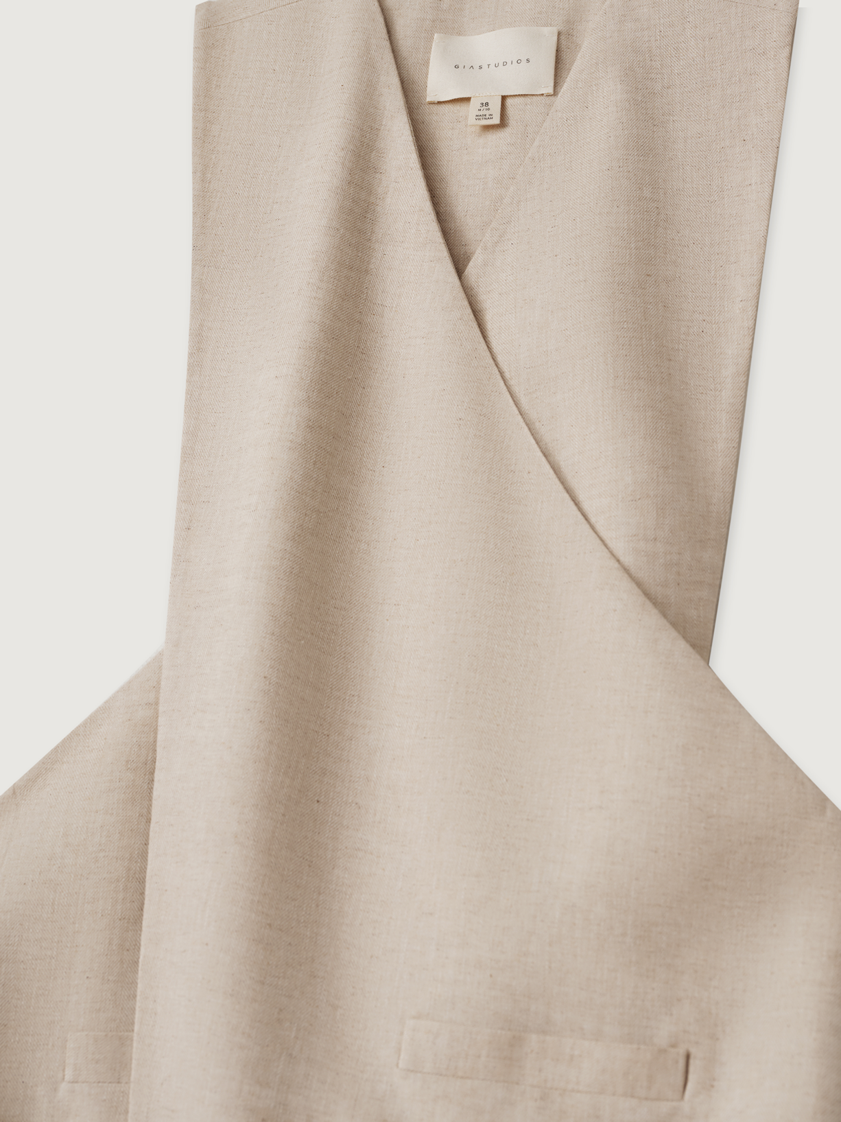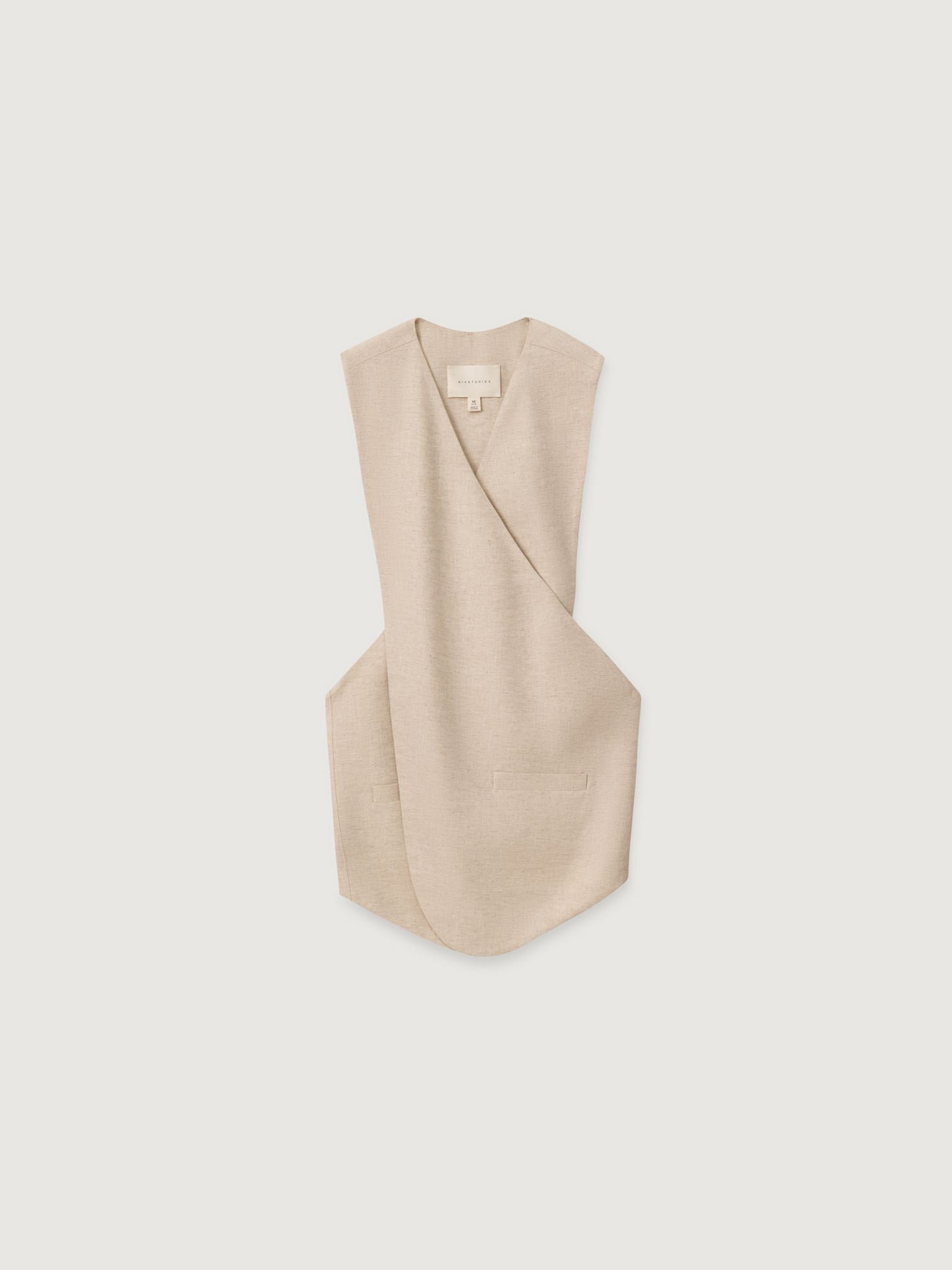 A relaxed-fit waistcoat, this design has deep-cut armholes and a single welted pocket on the underlayer.?